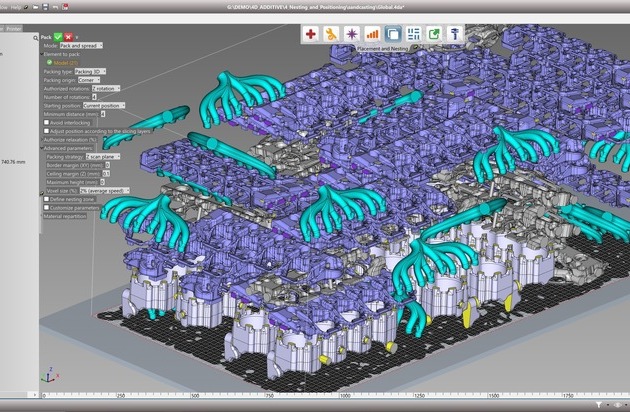 Die Implementierung der Inkjet-Technologie für das Auftragen von Bindemitteln oder Materialien erfordert eine enge Integration der Hard- und Software von industriellen Drucksystemen und innovativen Werkzeugen für die additive Fertigung sowie das Einlesen aller gängigen CAD-Modelle und die Bereitstellung der optimierten 3D-Daten in einem speziellen Format für Inkjet-Drucker. Diese Voraussetzung ist jetzt mit der Kooperation der beiden Spezialisten gewährleistet.