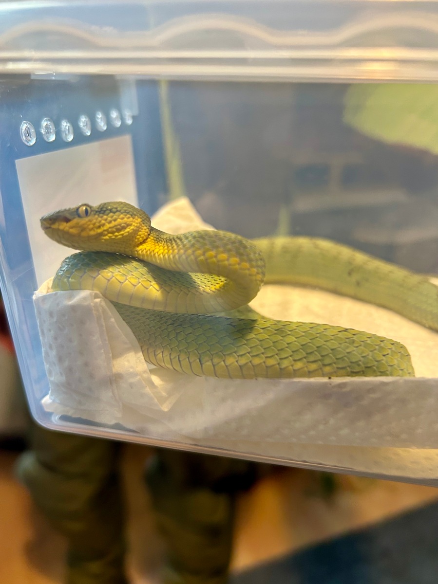 Am 30.01.2025 durchsuchten die Fahnder des Zollfahndungsamtes Essen mit Unterstützung der Experten die Wohnanschrift des Beschuldigten in Bochum. In dem Appartement stellten die Zollfahnder insgesamt 26 Reptilien fest. Die Experten vom Landesamt für Natur und Umwelt und Verbraucherschutz und von der Unteren Naturschutzbehörde Bochum begutachteten und kategorisierten die Exoten. Dabei wurden 20 hochgiftige Schlangen, darunter Puffottern, Terciopelo-Lanzenottern, Grubenottern, Grüne Bambusotter festgestellt. Weiter wurden zwei artgeschützte Baumsteigerfrösche und drei Hundskopfboas gefunden, sowie ein Gecko.