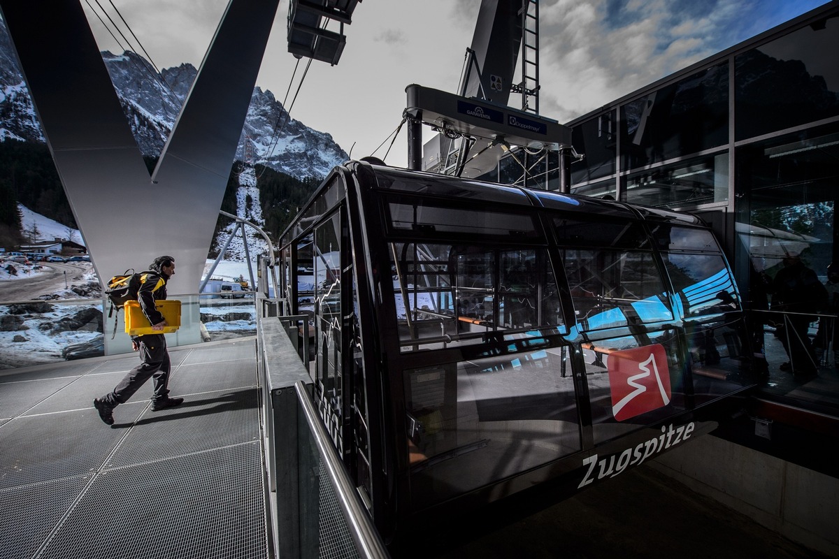DHL Group betreibt die höchste Postfiliale Deutschlands – auf der Zugspitze, in einer Höhe von etwa 2.600 Metern in den Alpen. Postmitarbeiter Andreas Oberauer leert den Briefkasten auf dem Bergplateau und liefert täglich Briefe und Pakete an einen der abgelegensten Orte des Landes – per Seilbahn. Ob bei Sonnenschein oder stürmischem Wetter – zuverlässig bringt er die Post per Zugspitzbahn zu den Restaurants und zur Aussichtsplattform. „Der sagenhafte Ausblick entschädigt für vieles, auch wenn das Wetter manchmal stürmisch ist“, sagt Oberauer.