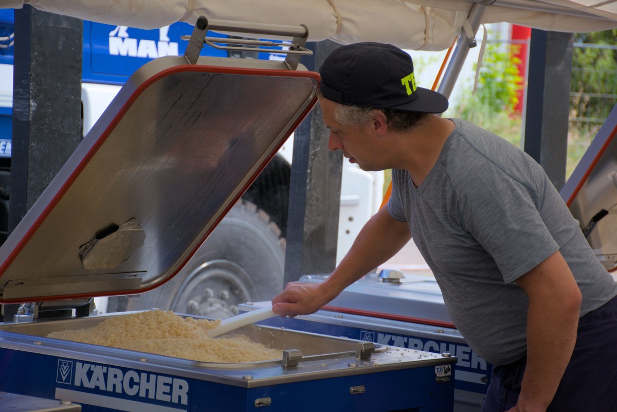 Aktuell sind rund 50 bayerische THW-Kräfte in Gohrischheide im Einsatz. Das bayerische THW unterstützt hier unter anderem die Verpflegung von rund 600 Einsatzkräften. Dazu wurde ein Bereitstellungsraum errichtet, der es ermöglicht Tausende Einsatzkräfte von Feuerwehr und anderen Hilfsorganisationen zu versorgen.
