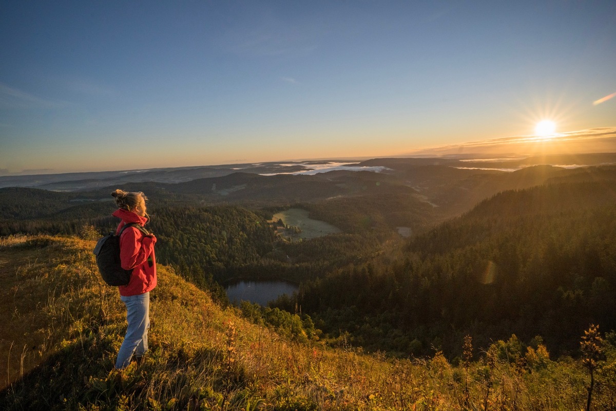 Ein einzigartiges Erlebnis erwartet Wanderinnen und Sonnenanbeter bei der Besteigung des Feldberggipfels in den frühen Morgenstunden. Los geht es auf leisen Sohlen, während die Täler noch schlafen. Mit der Dämmerung erwacht die Natur, bereit die ersten Sonnenstrahlen aufzunehmen. Am Gipfel heißt es dann warten, bis das Naturschauspiel beginnt und sich die Sonne langsam über den Horizont schiebt, um den Hochschwarzwald und die umliegenden Bergzüge mit ihrem Licht endgültig von der Nacht zu befreien. Bei Tagesanbruch darf dann auch eingekehrt und gefrühstückt werden, natürlich stilecht in einer urigen Hütte. Am 14. und 28. September und am 12. Oktober geht es zum Sonnenaufgang wieder hoch hinaus.