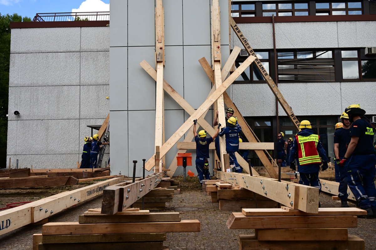 Die Fachgruppen Ortung stellten sich den besonderen Herausforderungen beim Suchen und Finden von Menschen in Gebäuden sowie eingeschlossen unter Trümmern. Die Spezialisten aus dem Bereich Abstützen trainierten, wie selbst zehn Meter hohe beschädigte Wände vor dem Einsturz gesichert werden können. Dies stets in enger Abstimmung mit den Kräften aus dem Bereichen Einsatzstellensicherung, welche Bewegungen in Gebäudestrukturen überwachen.