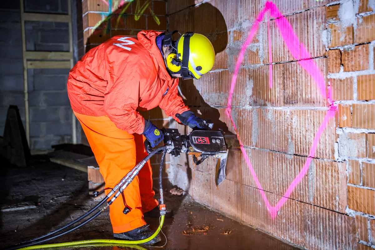 Als der Gruppenführer den anschwellenden Ton hörte, handelte er schnell und gab das vereinbarte Hornsignal: Drohnenanflug! Seine Einheit, die gerade ein Gelände nach Verletzten absuchte, flüchtete sich hinter einen Schutzwall, der bereits im Vorfeld als Evakuierungszone definiert worden war. Andere Kräfte, die in benachbarten Einsatzstellen aktiv waren, stießen rasch dazu. Dann die Entwarnung: Gefahr korrekt erkannt, Evakuierung erfolgreich - zurück in den Einsatz.