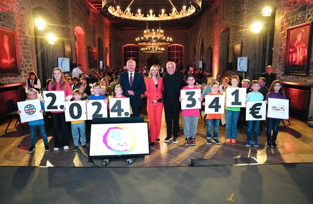 Die Spendenübergabe und die damit verbundene Live-Übertragung war ein Highlight der Jubiläumsveranstaltung zum 20-jährigen Bestehen von United Kids Foundations. Auch die Volksbank BRAWO Stiftung feiert ihren 20-jährigen Geburtstag.