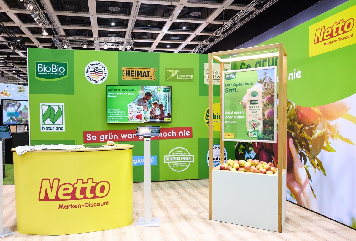 Der Netto-Messestand lädt zum Mitmachen ein: Ein Schätzspiel mit attraktiven Gewinnen, ein Reaction Desk mit spielerischen Elementen sowie Give-aways machen den Messebesuch interaktiv und vermitteln verbrauchernah die Themen Herkunft, Ernährung und Nachhaltigkeit.