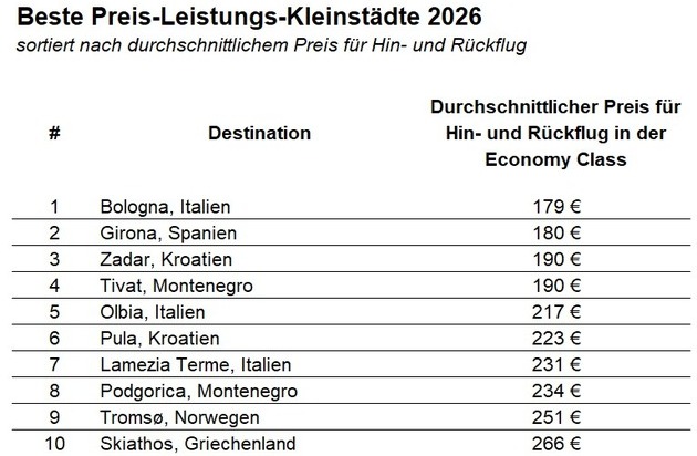 Auf Großstadttrubel haben Gen Z und Millennials offenbar weniger Lust. Für jeden Vierten ist die erhoffte Ruhe der Anlass, 2026 kleinere und unbekanntere Reiseziele zu entdecken. 40 Prozent setzen lieber auf eine kleinere Destination, weil diese oft auch günstiger sind. Welche "Kleinmetropolen" sich für den nächsten Städtetrip besonders gut eignen, zeigt das entsprechende KAYAK-Ranking.
